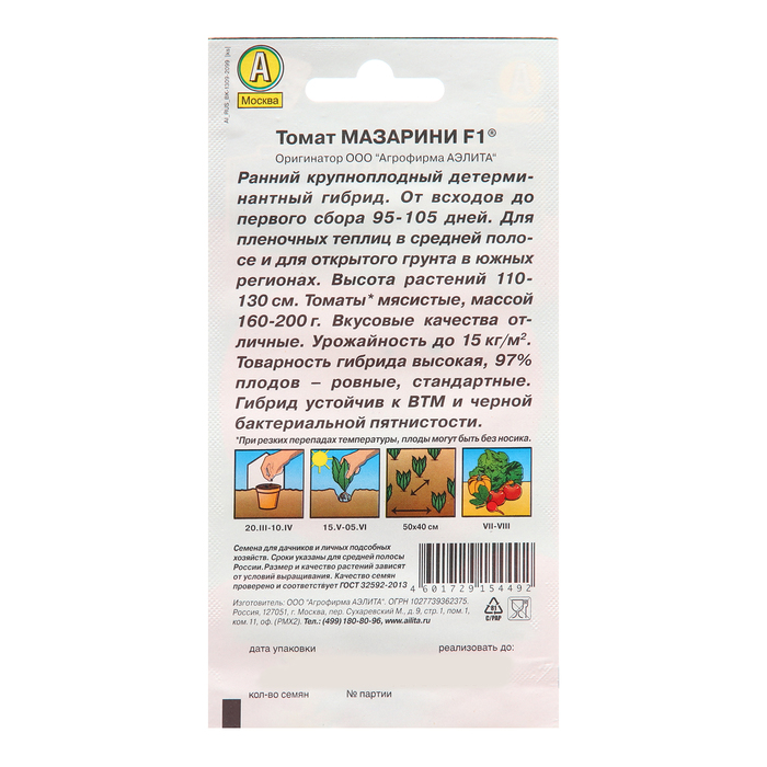 Мазарини — сорт очень крупных и исключительно вкусных томатов. Плоды в первой кисти достигают веса 600-700 г, в последующих 300-400 г. Они обладают сладкой сахаристой мякотью. Семян в этом томате очень мало. Этот сорт входит в десятку самых популярных томатов России. Предназначен он для выращивания в теплицах в средней полосе России и в открытом грунте на юге ( с обязательной подвязкой к опоре). Мазарини – томат индетерминантного типа, куст достаточно высокий (до 1,8-2 м), лист сильно разрезной (закручивается лодочкой), кисть рыхлая.