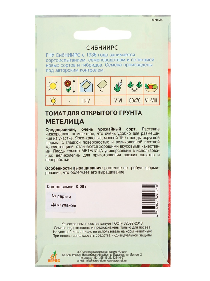 Семена Томат «Метелица», 0.08 г, «Агросс»