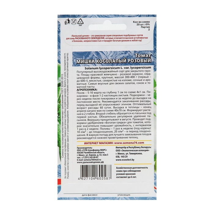 Крупноплодный, среднеспелый сорт для теплиц и открытого грунта. Выделяется крупными почковидными плодами теплого медово-желтого цвета, массой до 600 г. Мякоть томатов очень приятная, сладкая, почти без кислот, полезна для питания людей с заболеваниями кишечного тракта. Растение высотой 120-160 см, в зависимости от условий выращивания. Урожайность составляет 4-5 кг с растения. Посев на рассаду производят за 50-60 дней до высадки растений на постоянное место. Оптимальная постоянная температура прорастания семян 23-25°С. При высадке в грунт на 1 кв. м. размещают 3 растения. Сорт хорошо реагирует на полив и подкормки удобрениями. Выращивается в один-два стебля с подвязкой к опоре.