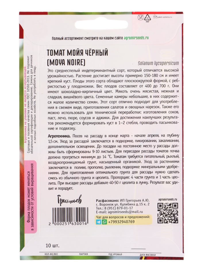 Семена Томат Мойя Чёрный (Moya Noire) 10шт. 12.29 г.