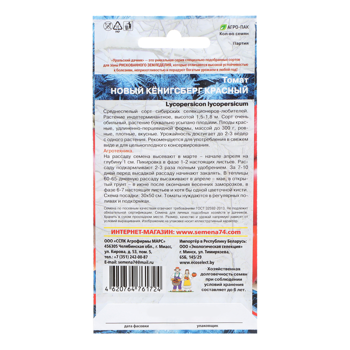 На рассаду семена высевают в марте - начале апреля, на глубину 1 см. Пикировка в фазе 1-2 настоящих листьев. Рассаду подкармливают 2-3 раза полным удобрением. За 7-10 дней перед высадкой рассаду начинают закалять. В теплицы 60-65 дневную рассаду высаживают в апреле-мае, в открытый грунт - в июне, после окончания весенних заморозков, в фазе 6-7 настоящих листьев хотя бы одной цветочной кисти. Схема посадки: 30x50 см. Полив следует осуществлять после захода солнца только теплой водой. Подкормки рекомендуется проводить в течение всего периода вегетации."
