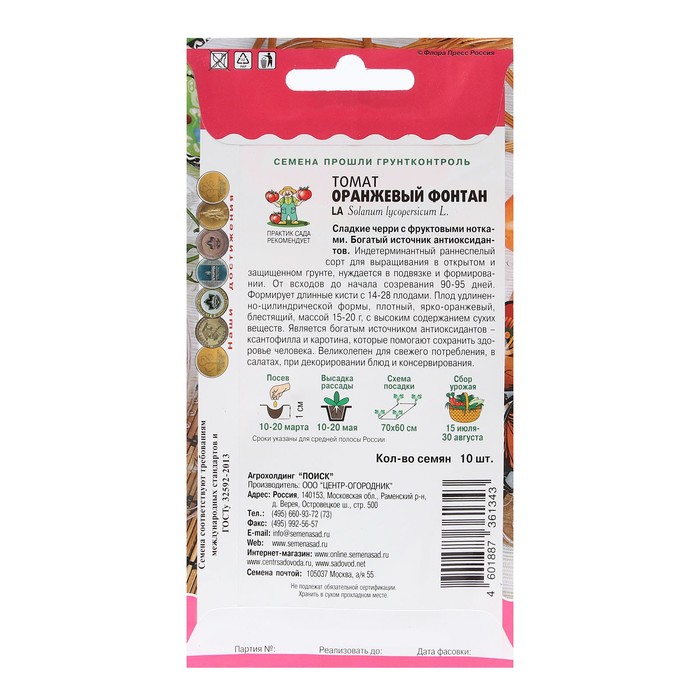 Сладкие черри с фруктовыми нотками.Индетерминантный раннеспелый сорт для выращивания в защищенном грунте, нуждается в подвязке и формировании. От всходов до начала созревания 90-95 дней. Формирует длинные кисти с 14-28 плодами. Плод удлиненно-цилиндрической формы, плотный, ярко-оранжевый, блестящий, массой 15-20 г, с высоким содержанием сухих веществ. Является богатым источником антиоксидантов –ксантофила и каротина, которые помогают сохранить здоровье человека. Великолепен для свежего потребления, в салатах, при декорировании блюд и консервирования.
