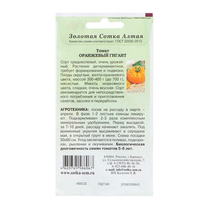 Семена Томат "Оранжевый Гигант", среднеспелый, 0,1 г