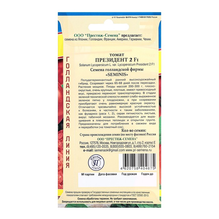 Полудетерминантный ранний высокоурожайный гибрид. Созревает через 65-68 дней после пересадки. Растение мощное. Плоды массой 200-300 г, плоско-округлые, очень крупные, плотные, имеют превосходный вкус, прекрасно переносят транспортировку. В стадии зеленой технической спелости имеют слабо-выраженное зеленое пятно у плодоножки, а при созревании приобретают очень равномерную красную окраску. Отличается чрезвычайно высокой устойчивостью к болезням, в частности к таким заболеваниям, как фузариоз (раса 1,2) увяданию, серая пятнистость листьев, вирус табачной мозаики. Рекомендуется для выращивания в пленочных теплицах и открытом грунте. Предназначены для потребления в свежем виде и переработки (на томатный сок).