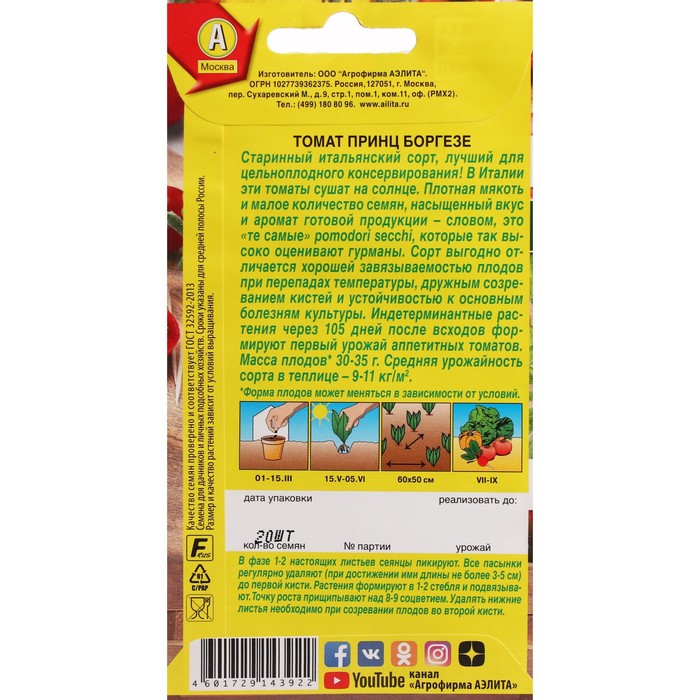 Старинный итальянский сорт, лучший для цельноплодного консервирования! В Италии эти томаты сушат на солнце. Плотная мякоть и малое количество семян, насыщенный вкус и аромат готовой продукции – словом, это «те самые» pomodori secchi, которые так высоко оценивают гурманы. Сорт выгодно отличается хорошей завязываемостью плодов при перепадах температуры, дружным созреванием кистей и устойчивостью к основным болезням культуры. Индетерминантные растения через 105 суток после всходов формируют первый урожай аппетитных томатов. Масса плодов 30-35 г. Средняя урожайность сорта в теплице – 9-11 кг/м2.