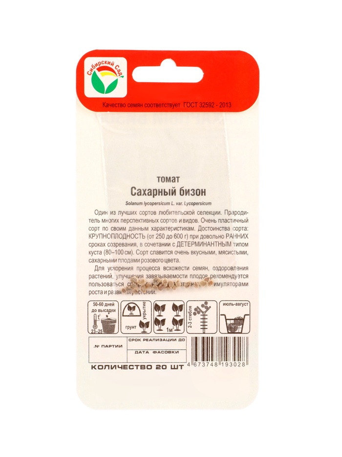 Семена Томат «Сахарный бизон», 20 шт., «Сибирский сад»