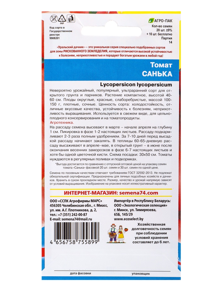 Семена Томат Санька 20 шт+10 бесплатно