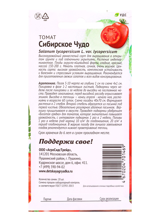 Семена Томат Сибирское Чудо 20 шт