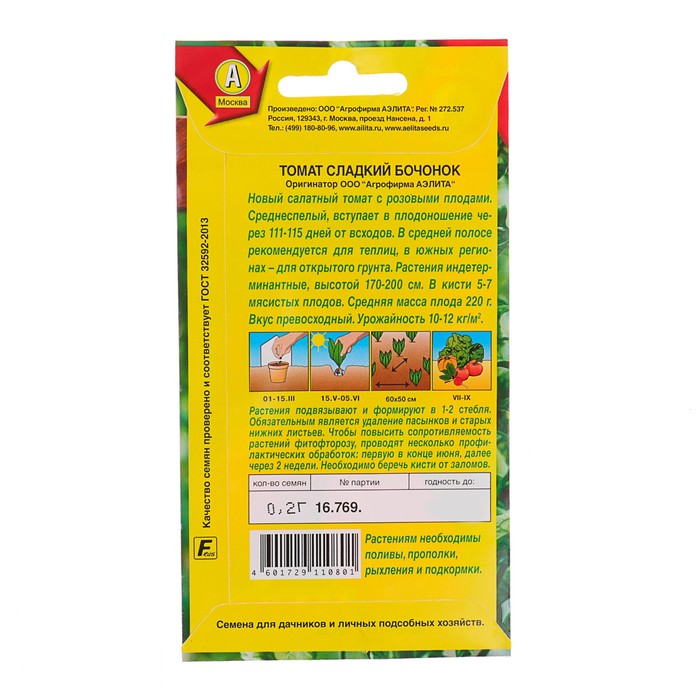 Выращивают через рассаду с пикировкой в фазе одного-двух настоящих листьев. Рассаду высаживают в возрасте 60-65 дней, размещая на 1м2 3-4 шт. Рекомендуется выращивание на шпалере с формированием в 1-2 стебля. Обязательным является удаление боковых побегов (пасынков).