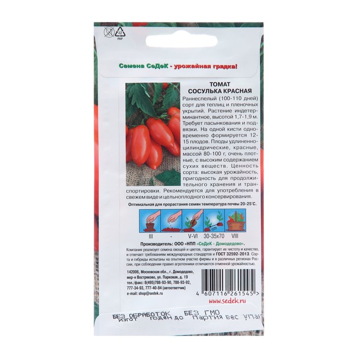 Раннеспелый (100-110 дней) сорт для теплиц и пленочных укрытий. Растение индетерминантное, высотой 1,7-1,9 м. Требует пасынкования и подвязки. На одной кисти одновременно формируется 12-15 плодов. Плоды удлиненно-цилиндрические, красные, массой 80-100 г, очень плотные, с высоким содержанием сухих веществ. Ценность сорта: высокая урожайность, пригодность для продолжительного хранения и транспортировки. Рекомендуется для употребления в свежем виде и цельноплодного консервирования.