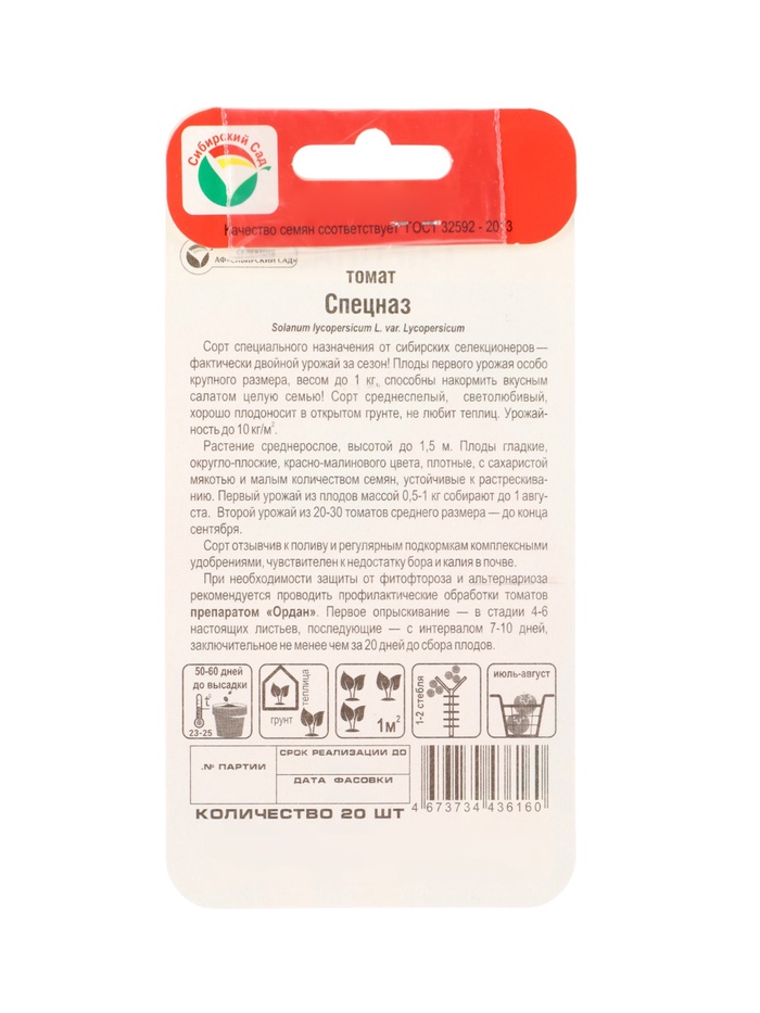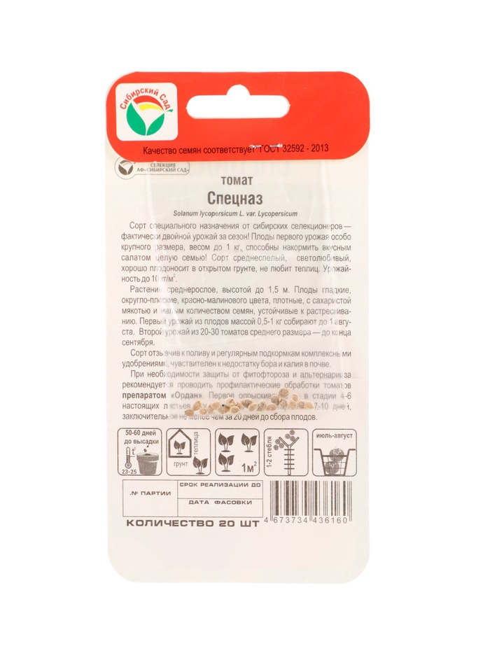 Семена Томат «Спецназ», 20 шт., «Сибирский сад»