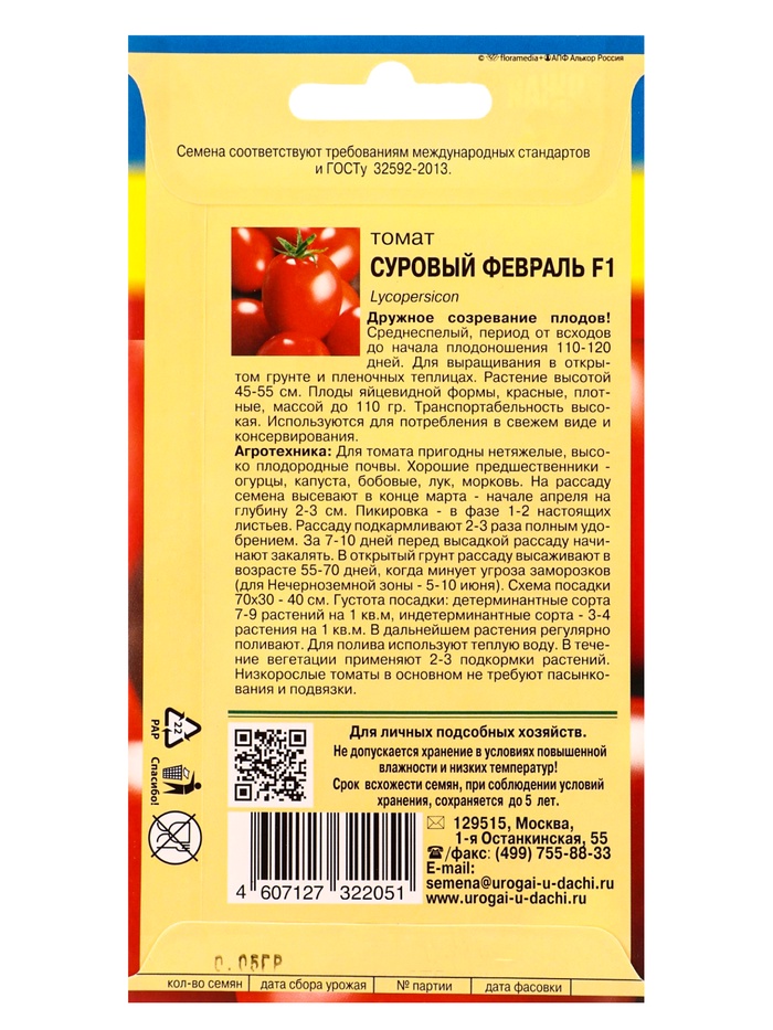 Семена Томат СУРОВЫЙ ФЕВРАЛЬ F1 0,05 г.