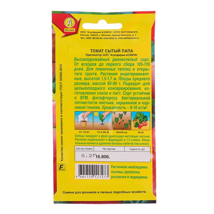 Высокоурожайный раннеспелый сорт. От всходов до первого сбора 105-110 дней. Для пленочных теплиц и открытого грунта. Растения индетерминантные, высотой 1,5-1,7 м. Плоды среднего размера, массой 80-90 г. Подходят для цельноплодного консервирования, изготовления соков и паст. Сорт устойчив к ВТМ, фитофторозу, бактериальной пятнистости листьев, вершинной и корневой гнилям. Урожайность – 9-10 кг/м 2 .