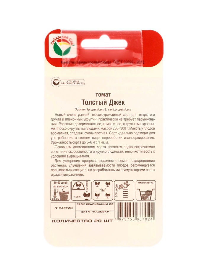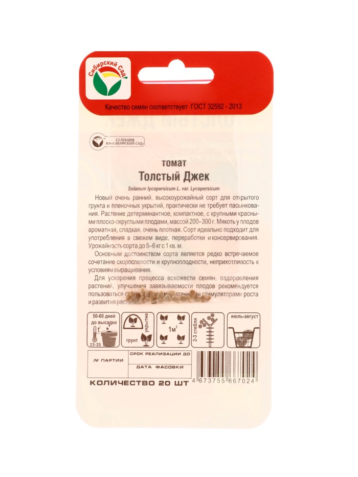 Семена Томат «Толстый Джек», 20 шт., «Сибирский сад»