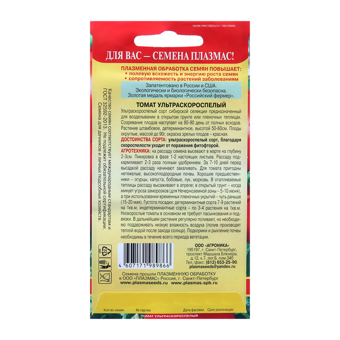 Ультраскороспелый сорт сибирской селекции предназначенный для возделывании в открытом грунте или пленочных теплицах. Созревание плодов наступает на 80-90 день от полных всходов. Растение штамбовое, детерминантное, высотой 50-60см. Плоды округлые, массой до 90г, в окраска зрелых плодов – красная.