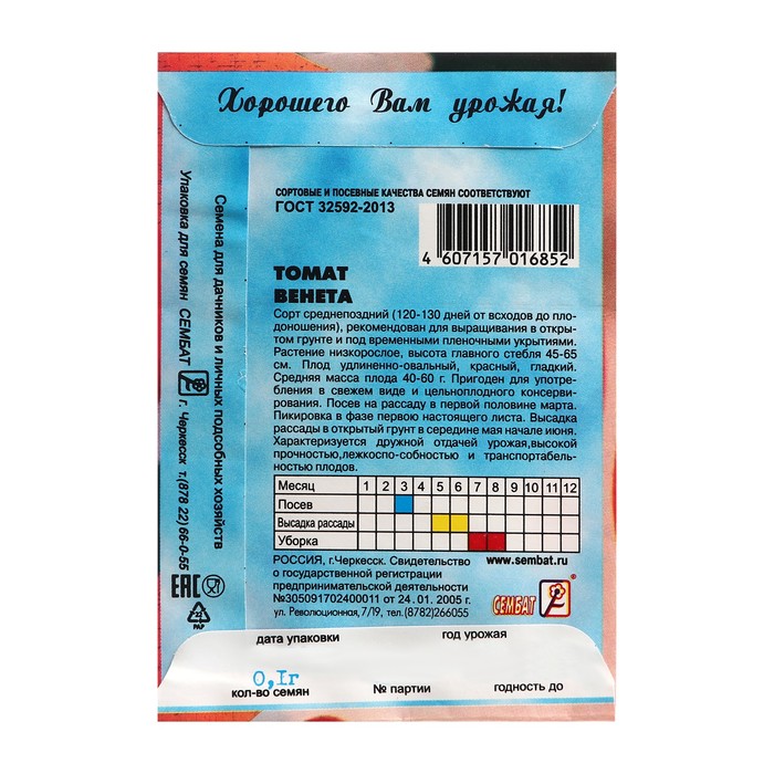 Среднепоздний сорт томата. Плодоносить начинает через 120-130 дней после появления всходов. Растение низкорослое, высота главного стебля 45…65 сантиметров. Плод удлиненно-овальный, красный, гладкий. Средняя масса плода 40…60 граммов. Пригоден для употребления в свежем виде и цельноплодного консервирования. Характеризуется дружной отдачей урожая, высокой прочностью, лежкоспособностью и транспортабельностью плодов. Рекомендован для выращивания в открытом грунте и под временными пленочными укрытиями.