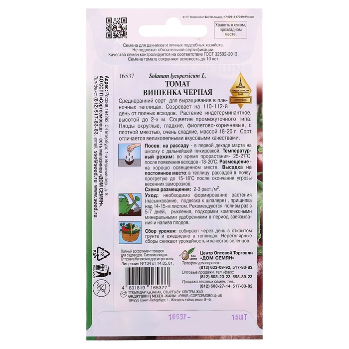 Среднеранний сорт для выращивания в плёночных теплицах. Созревает на 110-112-й день от полных всходов. Растение индетерминантное, высотой до 2-х метров. Соцветие промежуточного типа. Плоды округлые, гладкие, фиолетово-коричневые, с плотной мякотью, очень сладкие, массой 18-20 г. Сорт отличается великолепными вкусовыми качествами.