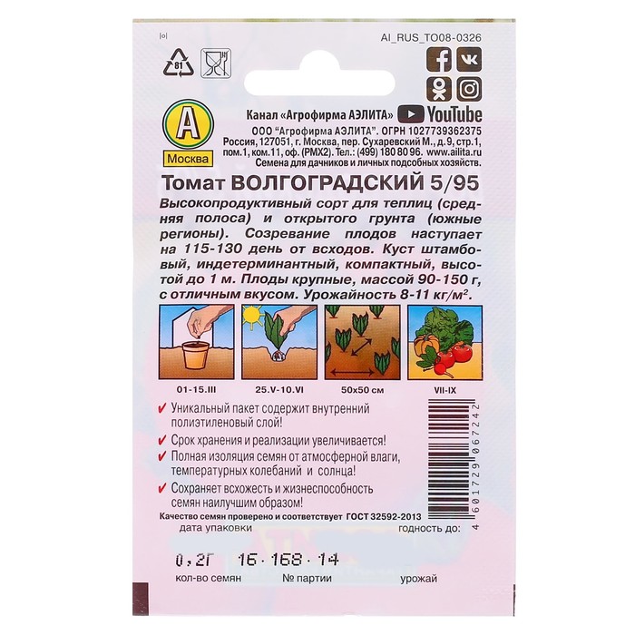«Волгоградский 5/95» — это позднеспелый сорт, у которого созревание наступает на 115–130 день после полных всходов.