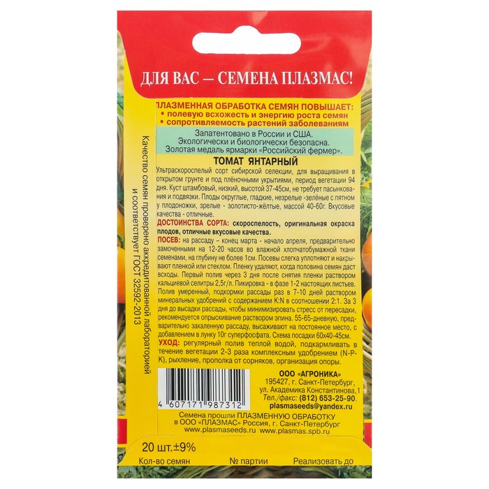 Ультраскороспелый сорт сибирской селекции, для выращивания в открытом грунте и под плёночными укрытиями, период вегетации 94 дня. Куст штамбовый, низкий, высотой 37-45 см, не требует пасынкования и подвязки. Плоды округлые, гладкие, незрелые -зелёные с пятном у плодоножки, зрелые - золотисто-жёлтые, массой 40-60 г.