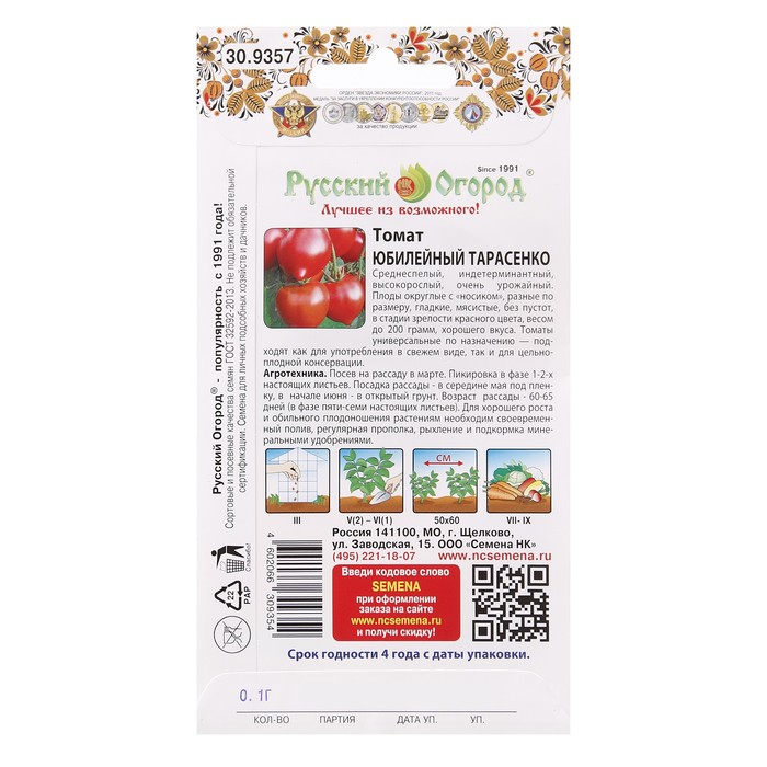 Семена Томат "Юбилейный Тарасенко", серия Русский огород, 0,1 г