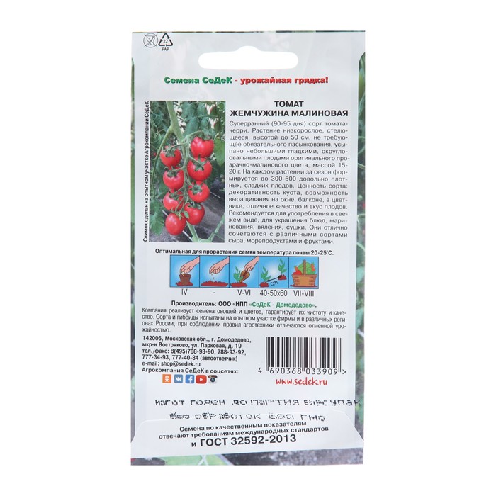 уперранний (90-95 дня) сорт томата-черри. Растение низкорослое, стелющееся, высотой до 50 см, не требующее обязательного пасынкования, усыпано небольшими гладкими, округло-овальными плодами оригинального прозрачно-малинового цвета, массой 15-20 г. На каждом растении за сезон формируется до 300-500 довольно плотных, сладких плодов. Ценность сорта: декоративность куста, возможность выращивания на окне, балконе, в цветнике, отличное качество и вкус плодов. Рекомендуется для употребления в свежем виде, для украшения блюд, маринования, вяления, сушки. Они отлично сочетаются с различными сортами сыра, морепродуктами и фруктами.