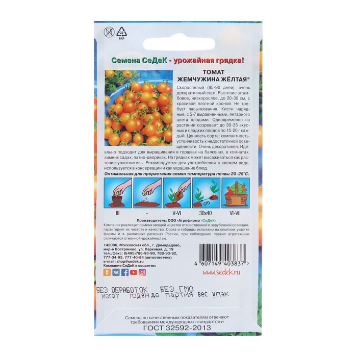Скороспелый (85-90 дней) очень декоративный сорт. Растение штамбовое, низкорослое, до 20-30 см, с красивой плотной кроной. Не требует пасынкования. Кисти нарядные, с 5-7 выравненными, янтарного цвета плодами. Одновременно на растении созревает до 30-35 вкусных и сладких плодов, по 15-20 г каждый. Ценность сорта: компактность, устойчивость к недостаточной освещенности. Очень декоративен. Идеально подходит для выращивания в горшках на балконах, в комнатах, зимних садах, патио-двориках. На грядках может высаживаться как растение-уплотнитель. Рекомендуется для употребления в свежем виде, используется в консервации и как украшение блюд.