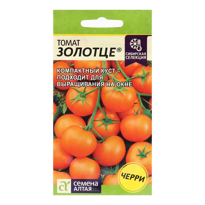 Селекция Агрофирмы «Семена Алтая». Раннеспелый супердетерминантный (высота 25-30 см) сорт. Куст усыпан плодами ярко-желтой окраски, массой 25 г. Очень вкусные, сладкие плоды — настоящее лакомство для детей и взрослых. Прекрасно подходят для украшения блюд, великолепны в засолке.