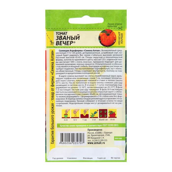Селекция Агрофирмы «Семена Алтая». Великолепный штамбовый сорт, который будет радовать Вас своим стабильно высоким урожаем! Сорт среднеспелый, детерминантный. Плоды округлой и плоскоокруглой формы, крупные, насыщено желтого цвета, массой 125 г, отдельные плоды достигают 500 г. Очень вкусные, прекрасно подходят для домашней кулинарии.