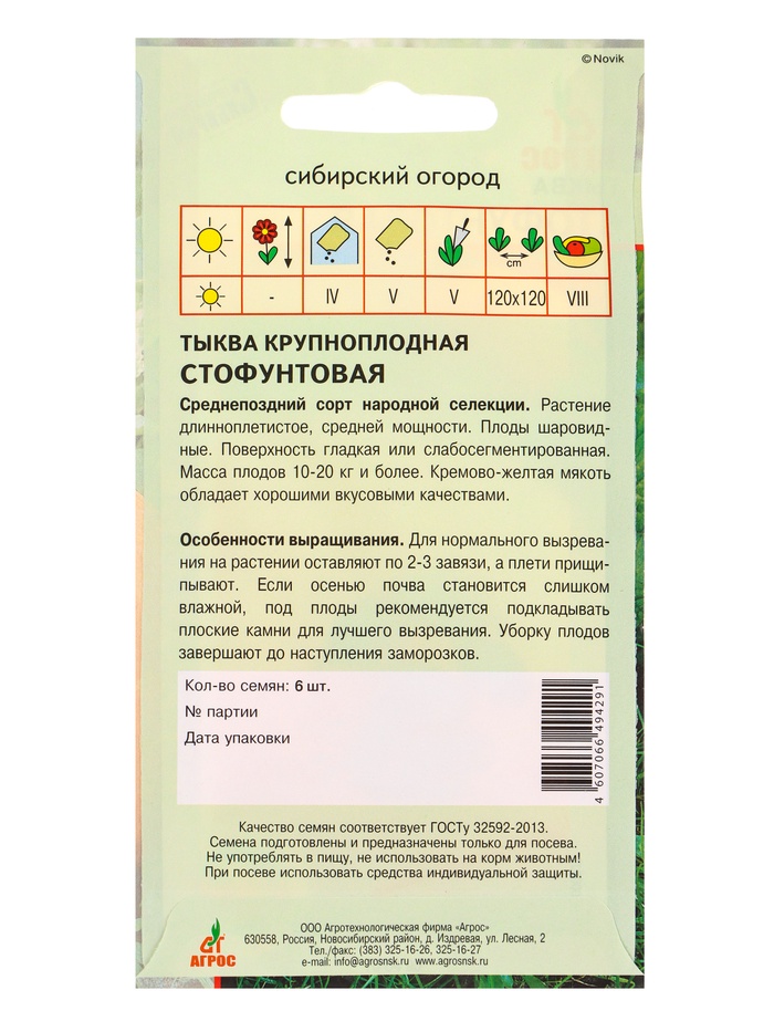 Семена Тыква "Стофунтовая" 6 шт