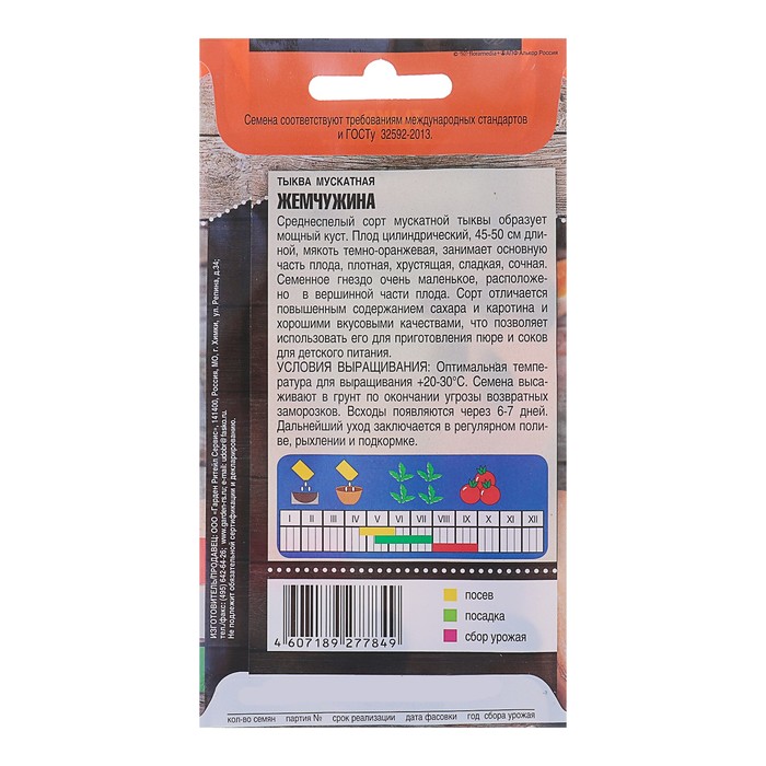 Среднепоздний (100–110 дней от всходов до созревания) мускатный сорт. Растение мощное, плетистое, с 4–7 боковыми плетями. Плоды удлиненно-цилиндрической формы, массой 2,6–5,6 (до 7,5) кг. Окраска плодов желтовато-оранжевая, мякоти — оранжевая с красным оттенком. Семенное гнездо очень маленькое, расположено в вершинной части плода. Мякоть толстая, нежная, сочная, сладкая. Ценится за засухоустойчивость, высокий выход полезной мякоти, отличный вкус и высокое содержание каротина. Урожайность до 15 кг/м2.