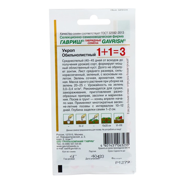 Среднеспелый (40–45 дней от всходов до получения урожая) сорт, формирует мощный облиственный куст. Долго не образует зонтик. Лист среднего размера, сильнорассеченый, зеленый с восковым налетом. Зелень сочная, ароматная, нежная. Масса одного растения при уборке на зелень 20–25 г. Урожайность на зелень 3,0–3,4 кг\м2. Рекомендуется для сушки, замораживания, приготовления разнообразных приправ, засолки и маринования. Посев в грунт — конец апреля–начало мая. Применяют многократные весенне-летние посевы с интервалом 10–12 дней. Глубина заделки семян 1–2 см.