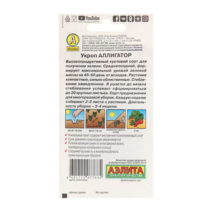 Высокопродуктивный сорт, от всходов до уборки на зелень – 42-45 дней. Отличается замедленным стеблеванием, что позволяет продлить период использования зеленой массы. Растения компактные, сильнооблиственные, высота в фазе цветения до 160 см. Масса одного растения при уборке на зелень 15-20 г (урожайность – 2,6 кг/м2), на специи – 30-60 г (2,8 кг/м2) . Листья крупные, ароматичность сильная. Рекомендуется для потребления в свежем виде, сушки и замораживания.