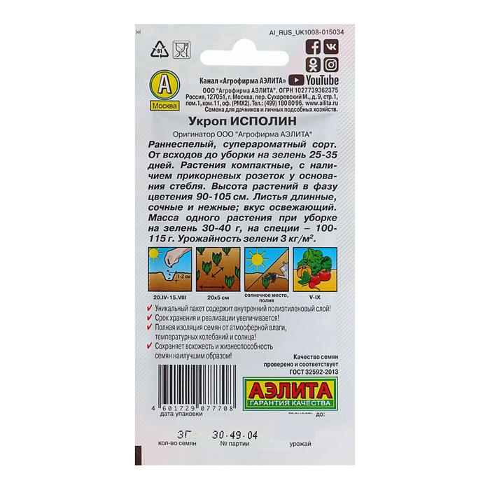 «Исполин» представляет собой раннеспелый сорт укропа. Растение формирует длинные листы тёмно-зелёного цвета с сильным восковым налётом.