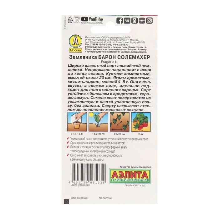 «Барон Солемахер» — крупноплодный высокоурожайный сорт земляники, не образующий усов. Растение формирует насыщенно-красные ягоды конической формы с нежной сладкой и ароматной мякотью.