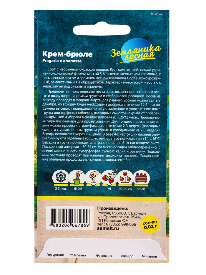 Семена Земляника Крем-брюле желтая ремонтантная/Сем Алт/цп 0,02 гр.