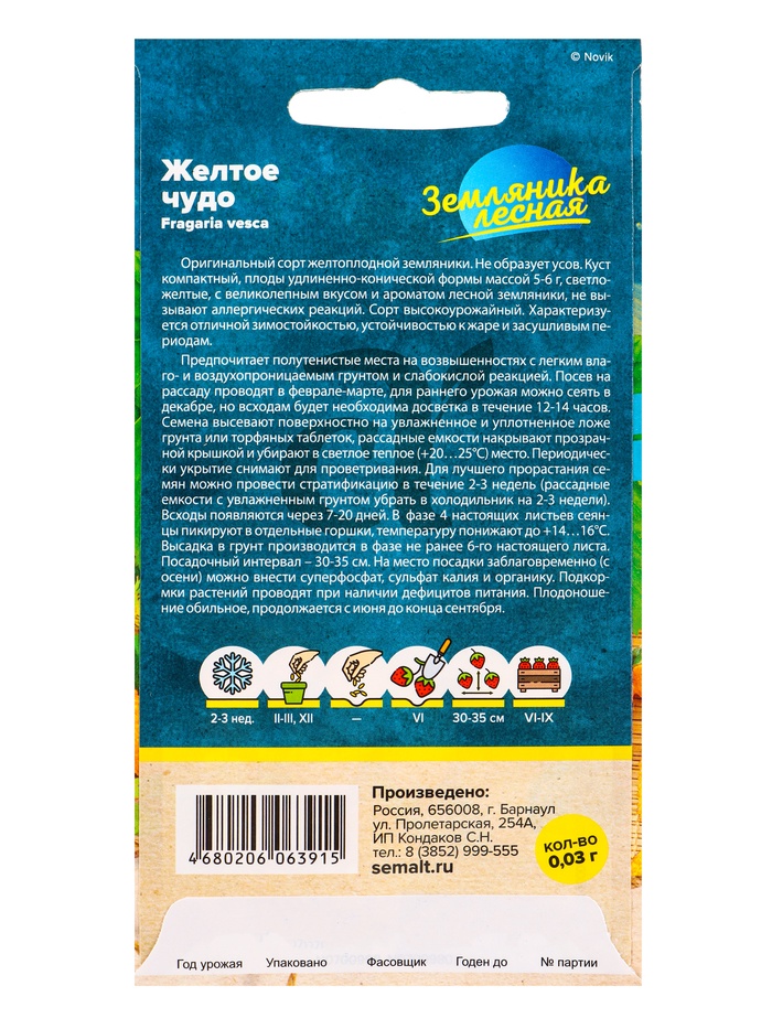 Семена Земляника Желтое чудо ремонтантная/Сем Алт/цп 0,03 гр.
