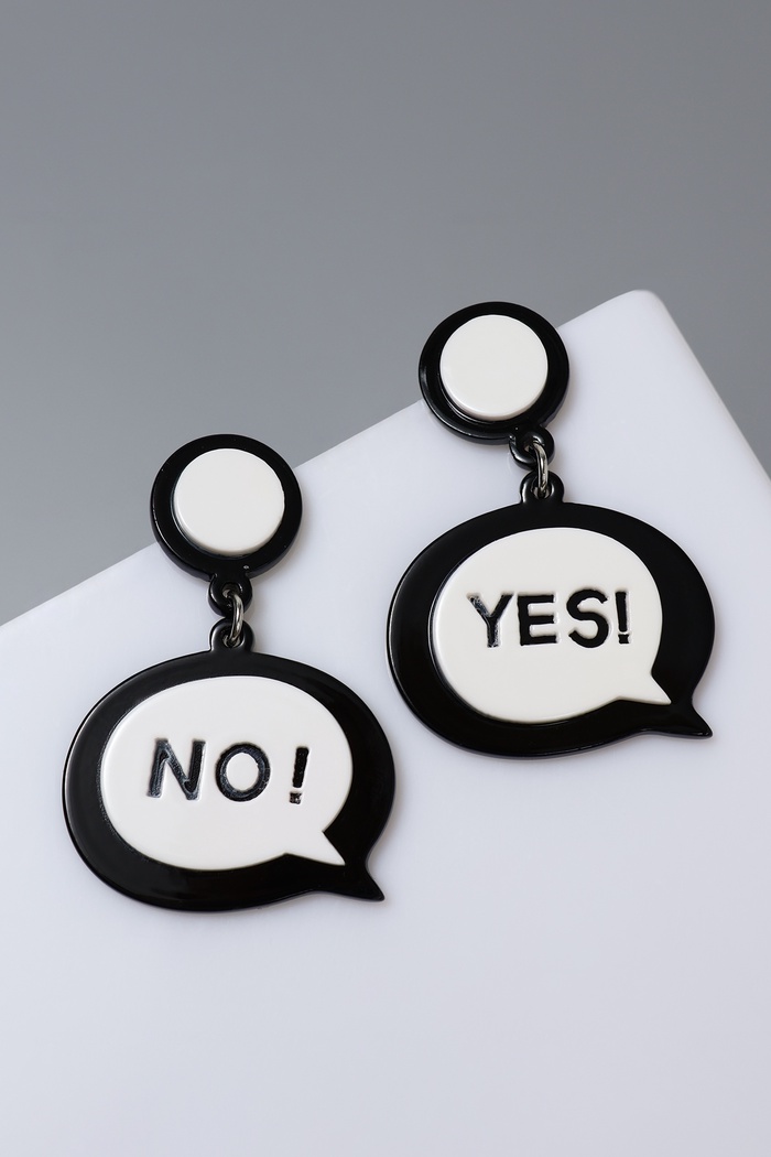 Серьги с контрастным чёрно-белым дизайном и акриловыми вставками в форме надписей «YES!» и «NO!» — лаконичный аксессуар для женщин и девочек, которые ценят выразительные детали и современный стиль. Компактная длина 5 см делает их удобными для повседневного ношения и праздничных событий.