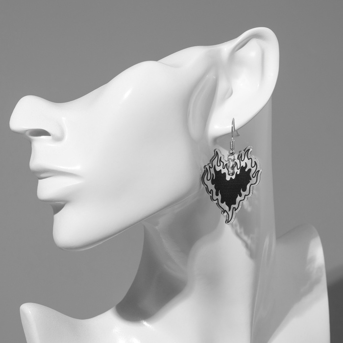 Чёрные акриловые серьги в форме пылающего сердца — это смелое и выразительное украшение, которое легко подчеркнёт вашу индивидуальность и стиль. Длина 5,7 см делает их заметным, но при этом удобным аксессуаром для повседневного ношения и особых случаев.