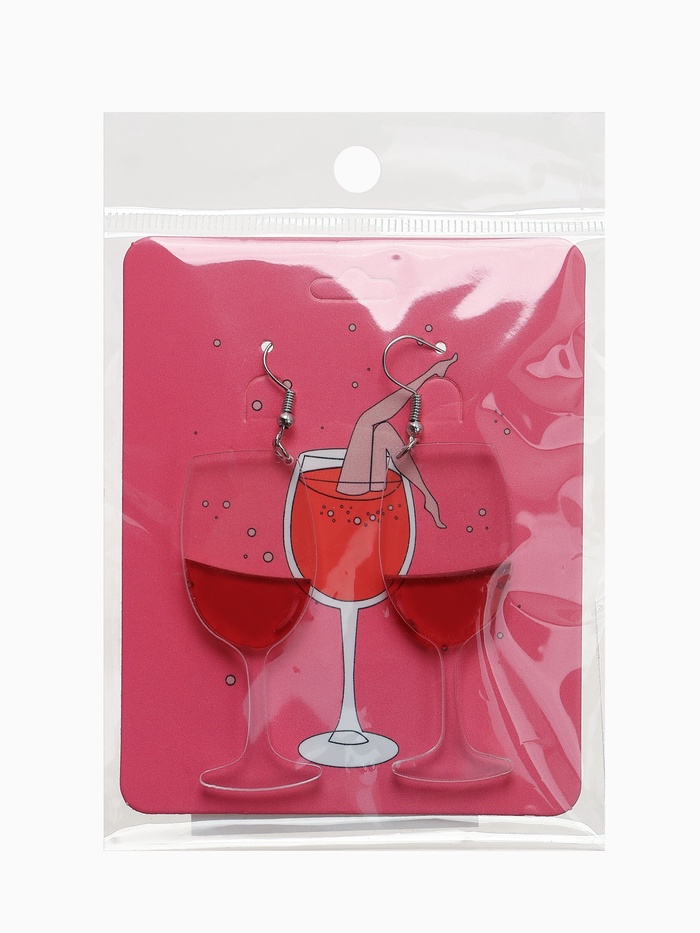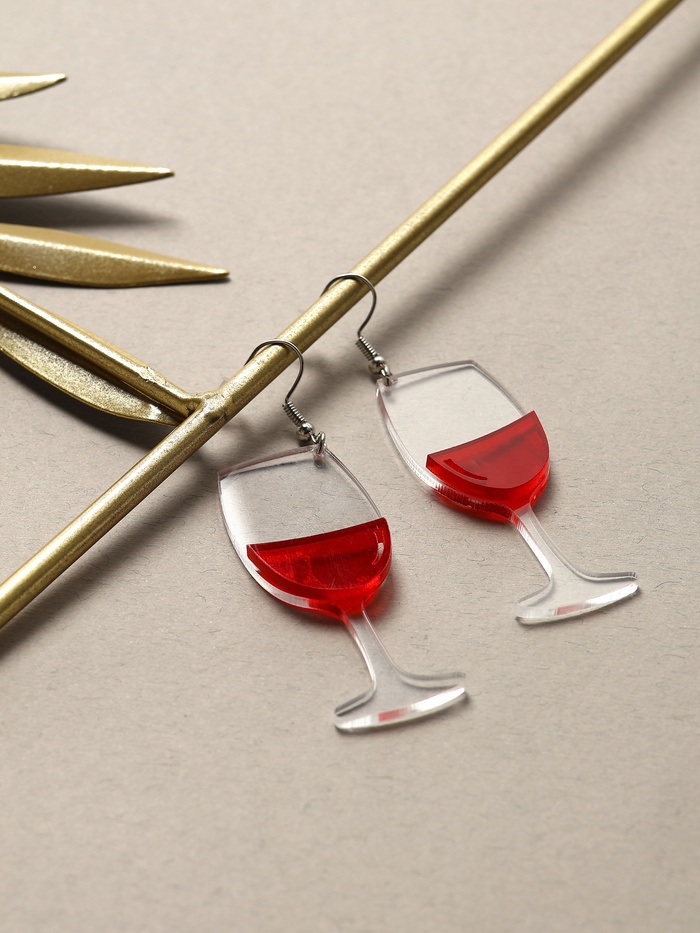 Серьги с акриловыми элементами в виде бокалов с красным вином на серебристой металлической основе — стильный акцент для праздничного образа. Длина 8 см подчёркивает выразительность украшения, делая его заметным аксессуаром для женщин и девочек.