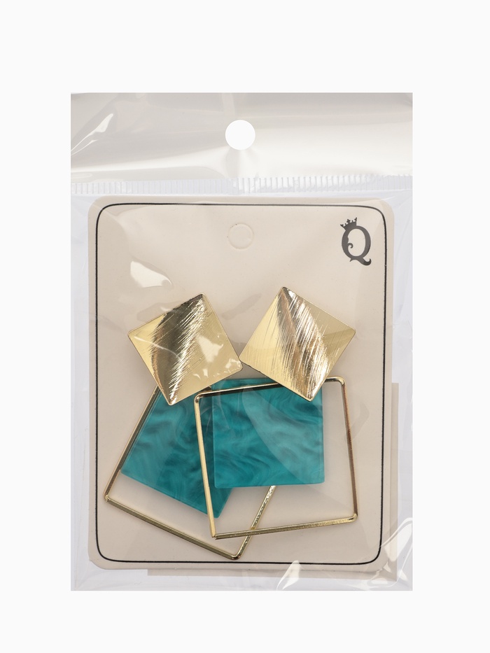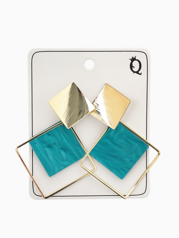 Лёгкие серьги с бирюзовыми ромбами на золотистой основе — современный аксессуар для женщин, которые ценят яркие, но сдержанные детали в образе. Длина 6 см подчёркивает элегантность и добавляет свежий цветовой акцент.