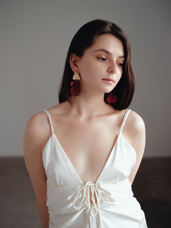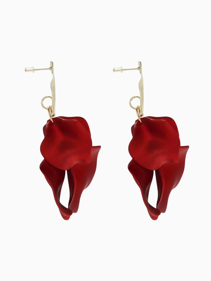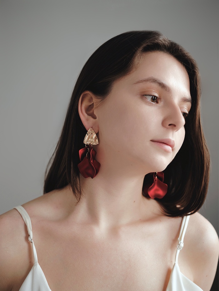 Красный цвет ассоциируется с энергией и страстью, а золотой добавляет тепла и изящества. Эти серьги станут заметным элементом образа, подчёркивая женственность и современный вкус.