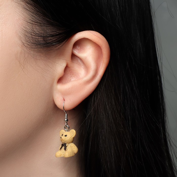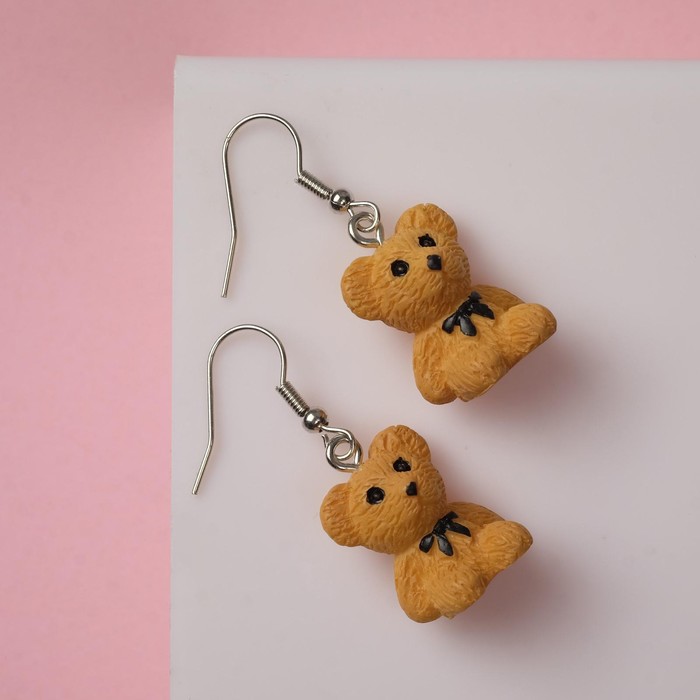 Серьги с фигурками мишек в тёплых коричнево-чёрных оттенках на серебристой основе — лаконичное украшение для девушек и женщин, ценящих оригинальные детали в образе. Длина 4 см делает их удобными для ежедневного ношения, а замок-петля надёжно фиксирует украшение.