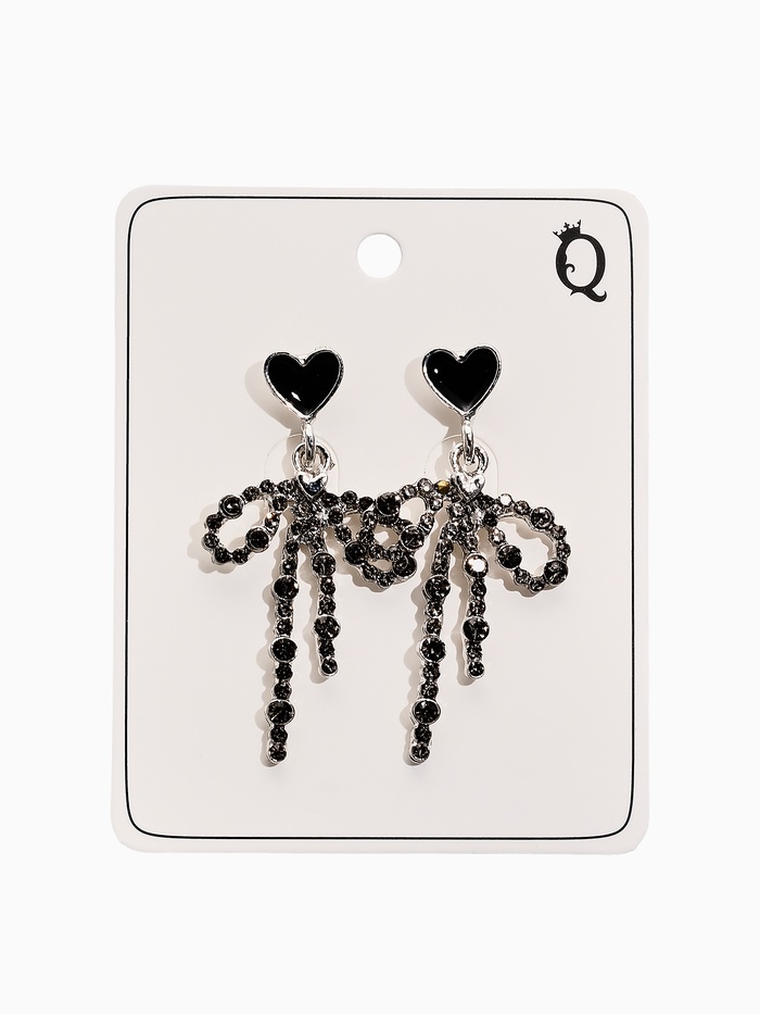 Серьги "Бантики с сердечками", цвет чёрно-серый в серебре