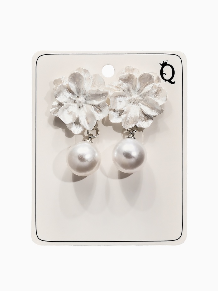 Серьги "Цветок с жемчугом", цвет белый в серебре
