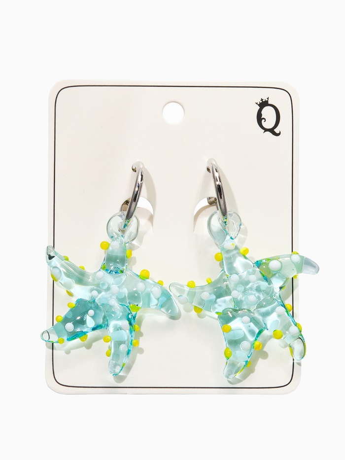 Серьги из стекла "Море", звезда, цвет голубой в серебре