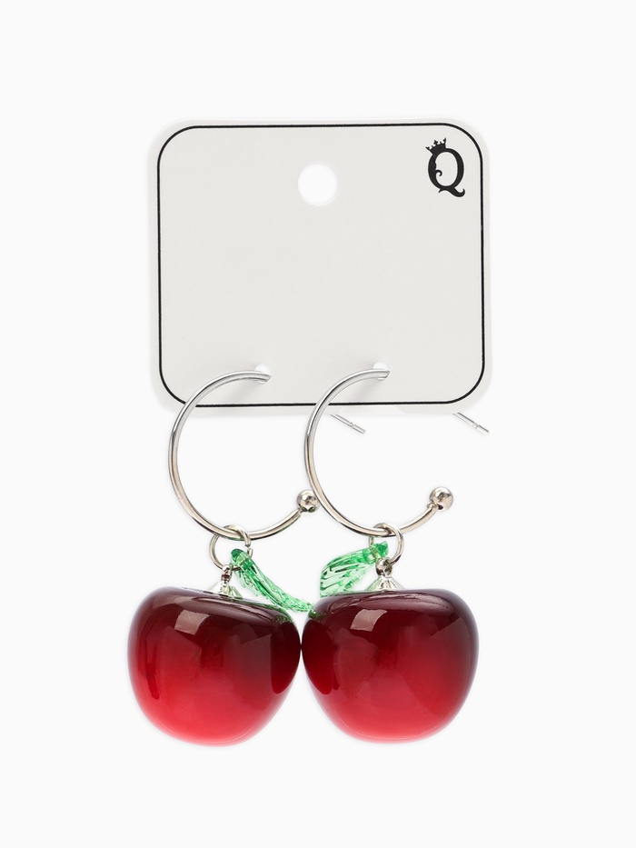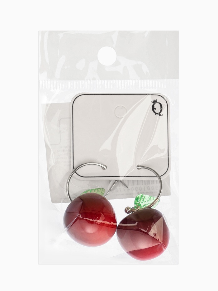 Откройте для себя прекрасное сочетание природы и искусства с сережками-кольцами «Черешня с листочком». Эти яркие украшения поражают воображение сочным бордовым цветом ягод и натуральностью зеленых листьев, выполненных из полистоуна. Идеальны для добавления летнего настроения в любой сезон.