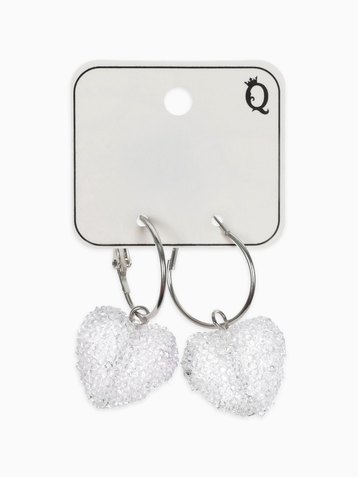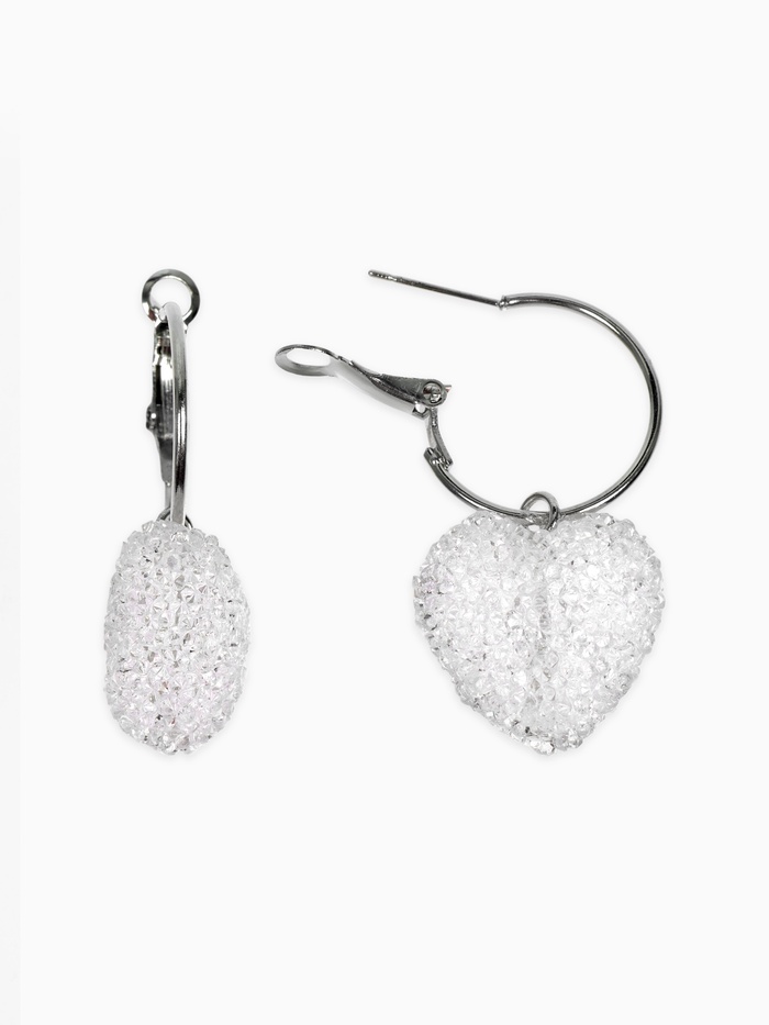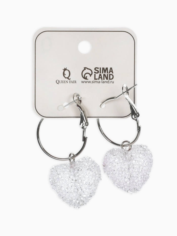Металлическая основа с серебристым покрытием обеспечивает прочность и долговечность, а акриловая вставка в форме сердца придаёт серьгам воздушность и мягкий блеск. Застёжка-левербек гарантирует надёжную фиксацию и комфорт даже при длительном использовании.
