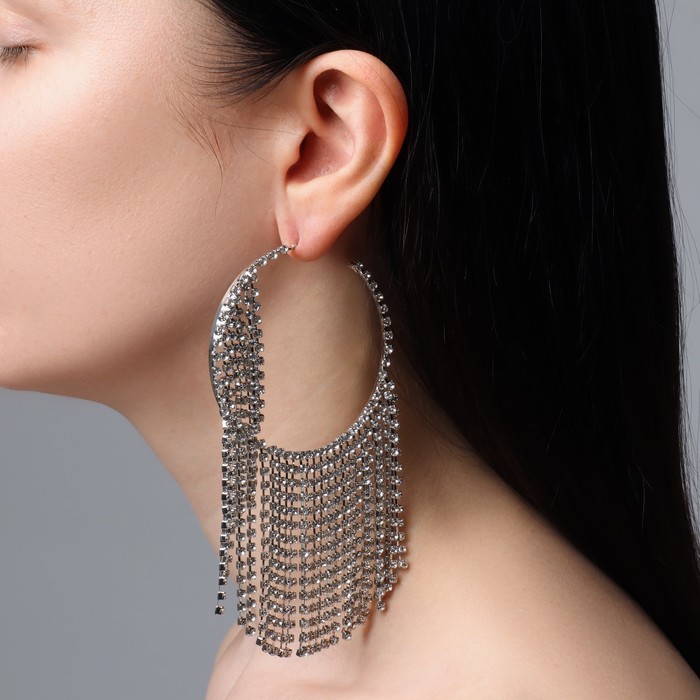 Откройте для себя мир утончённой элегантности с серьгами, которые воплощают в себе великолепие и современный стиль. Эти серебристые серьги-кольца с роскошными стразами в дизайне "Водопад" добавят грации и шарма в любой ваш образ, позволяя вам сиять на любом мероприятии.