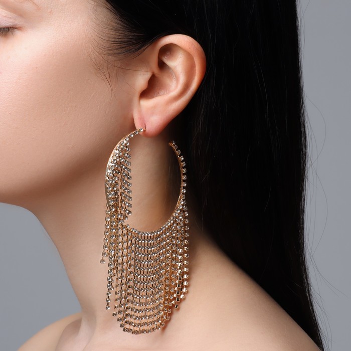 Погружаясь в мир ювелирного изыска, вы неизменно встретите уникальные серьги, которые превращают любую простую комбинацию в захватывающий образ. Эти серьги-кольца со стразами в дизайне «Водопад» олицетворяют собой утончённость и гармонию, effortlessly дополненные золотистой фурнитурой, обеспечивая роскошный акцент для завершения любого наряда.