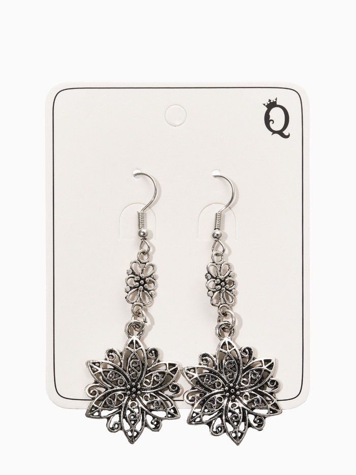 Серьги метал "Аутентичность" цветы, цвет чернёное серебро